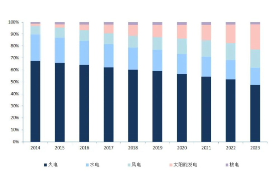 图5 2014—2023年全国电力装机结构